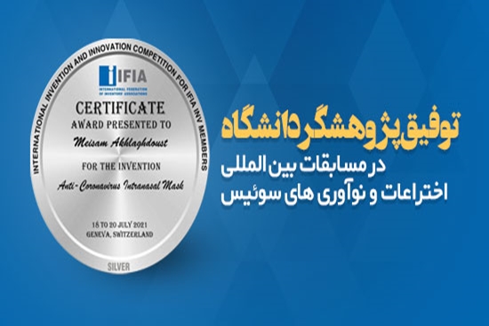 اختراع پژوهشگر جوان دانشگاه، ماسك اينترانازال ضد كرونا، در مسابقات بین المللی اختراعات و نوآوریهای سوئیس برنده مدال نقره شد.
