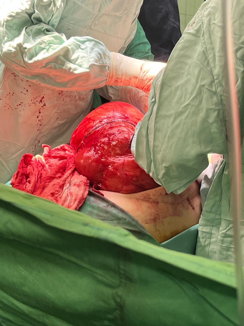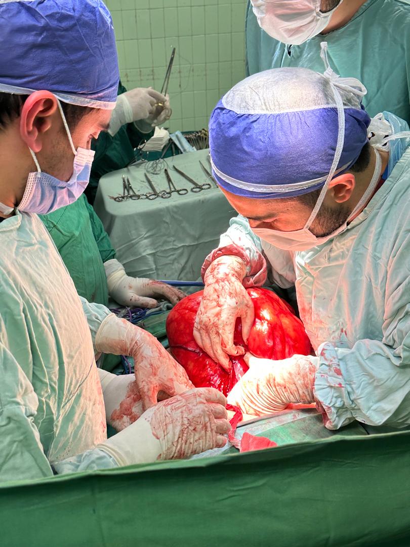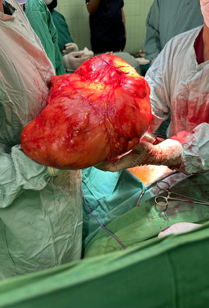پس از تایید وجود توده مقدمات جراحی بیمار فراهم شد و بیمار توسط تیم جراحی متشکل از دکتر برمک قلی زاده و دکتر ایمان انصاری و دکتر منوچهر دایی دستیاران ارشد جراحی تحت عمل جراحی لاپاراتومی( جراحی باز شکم) قرار گرفت.