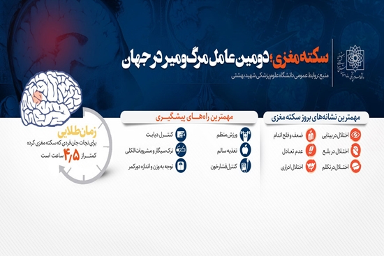 دکتر فرزاد اشرافی، متخصص مغز و اعصاب وعضو هیئت علمی دانشگاه علوم پزشکی شهید بهشتی نیز در گفت و گو با خبرنگار روابط عمومی دانشگاه سکته مغزی را دومین علت مرگ و میر در دنیا معرفی می کند و توضیح می دهد: "هرگونه اختلال در خونرسانی به بافت مغز سکته مغزی تلقی می شود."