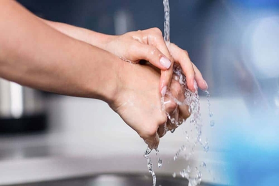 ابتدا دستان خود را با آب خیس کنید. سپس صابون را اضافه کنید.