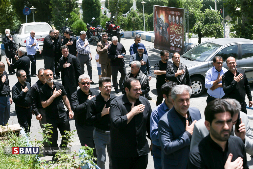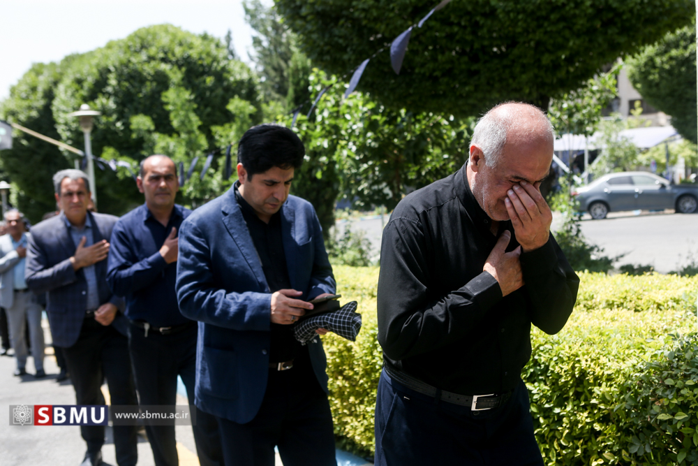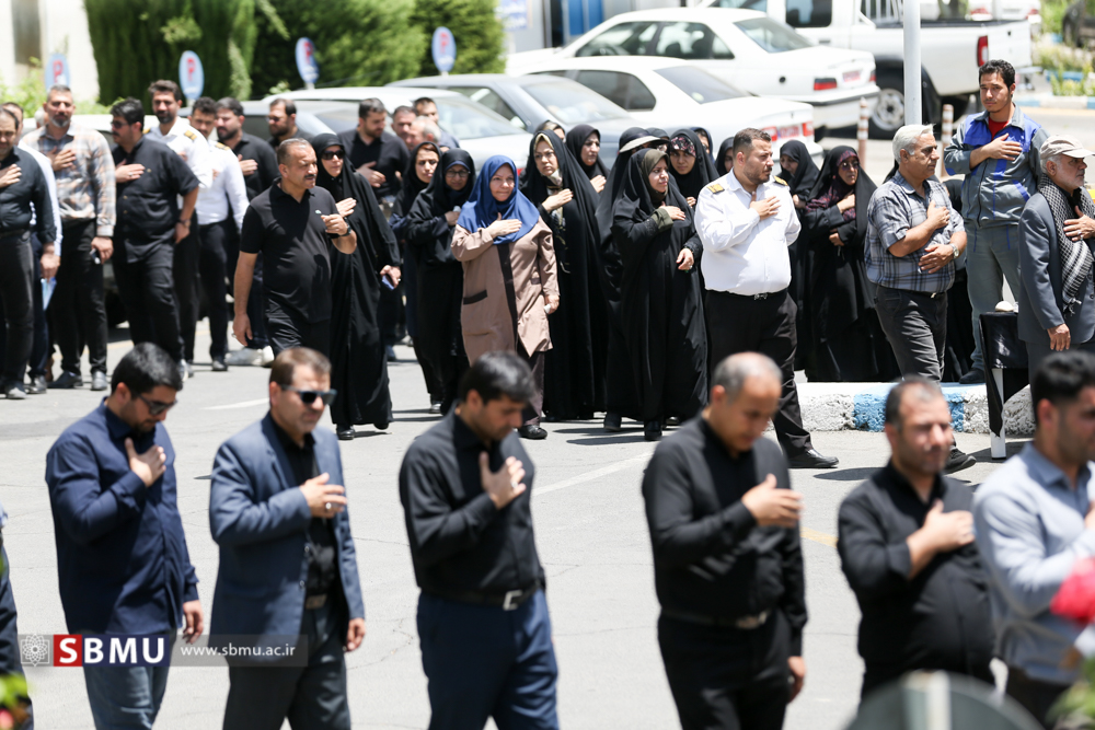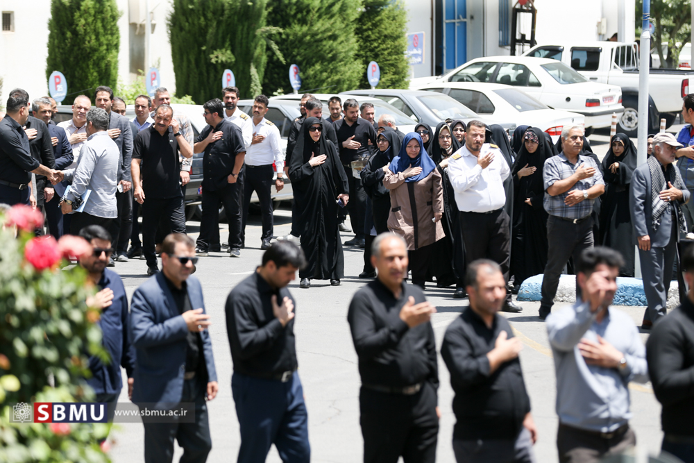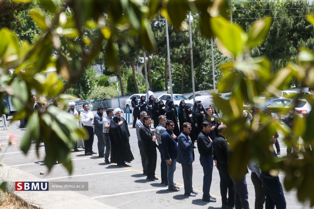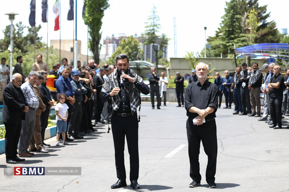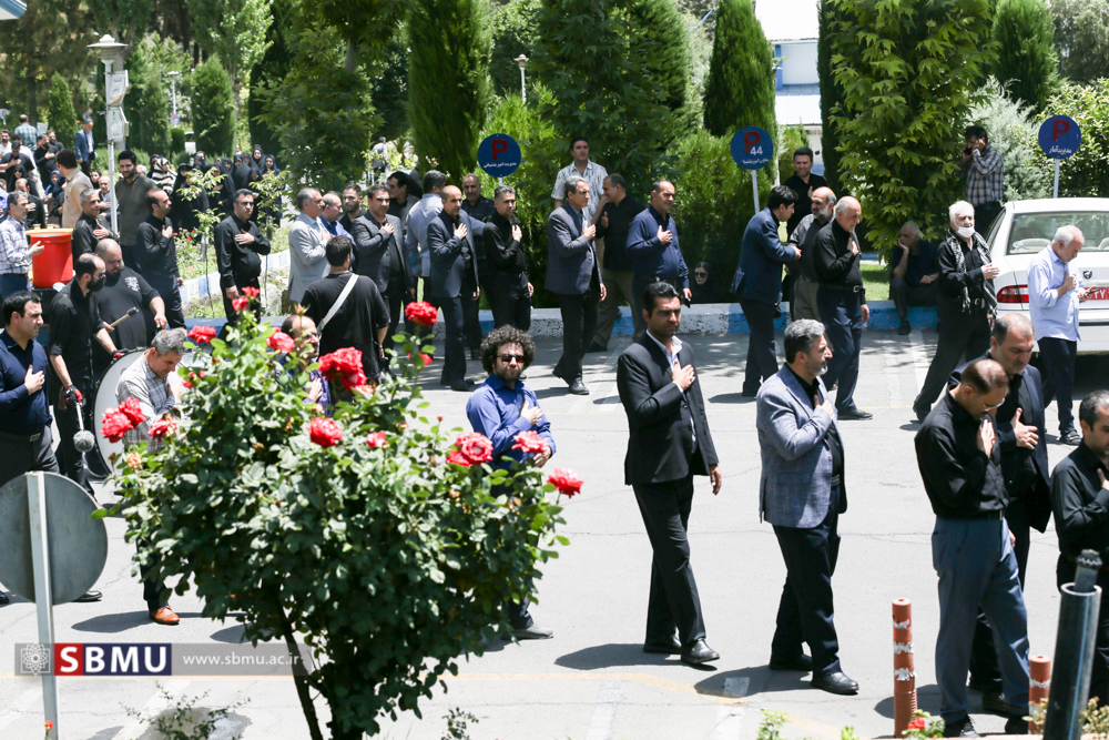 مراسم عزاداری حضرت اباعبدالله‌الحسین(ع) با حضور جمعی از مسئولان و کارکنان دانشگاه علوم پزشکی شهید بهشتی سه شنبه دهم تیرماه در محوطه ستاد دانشگاه برگزار شد.