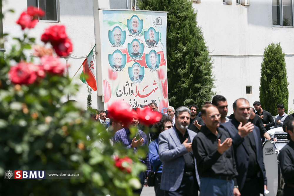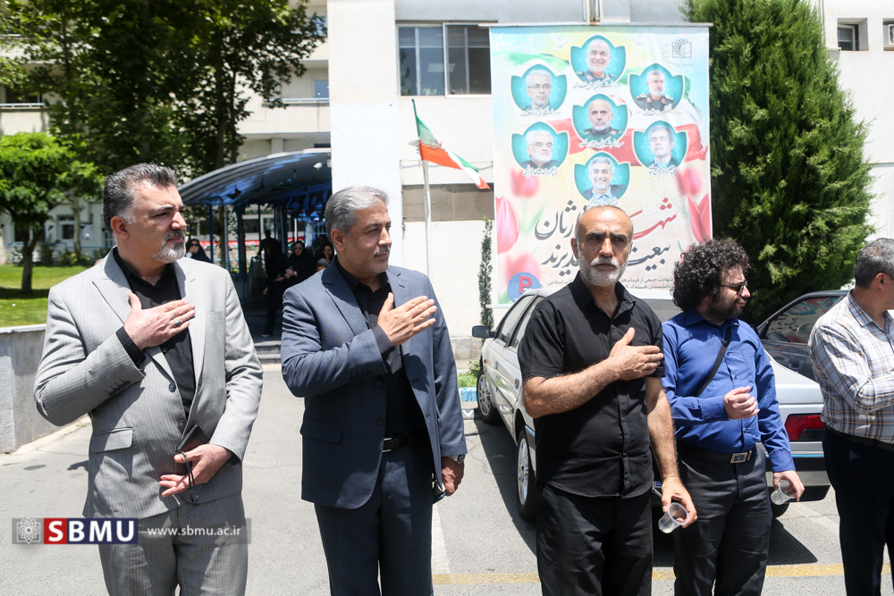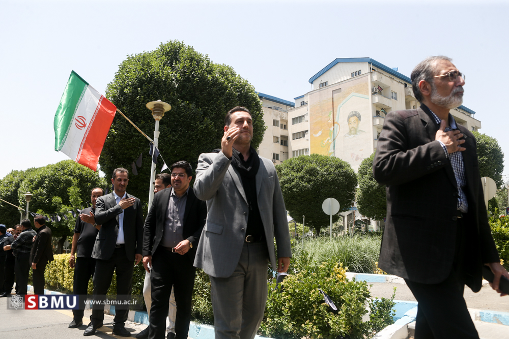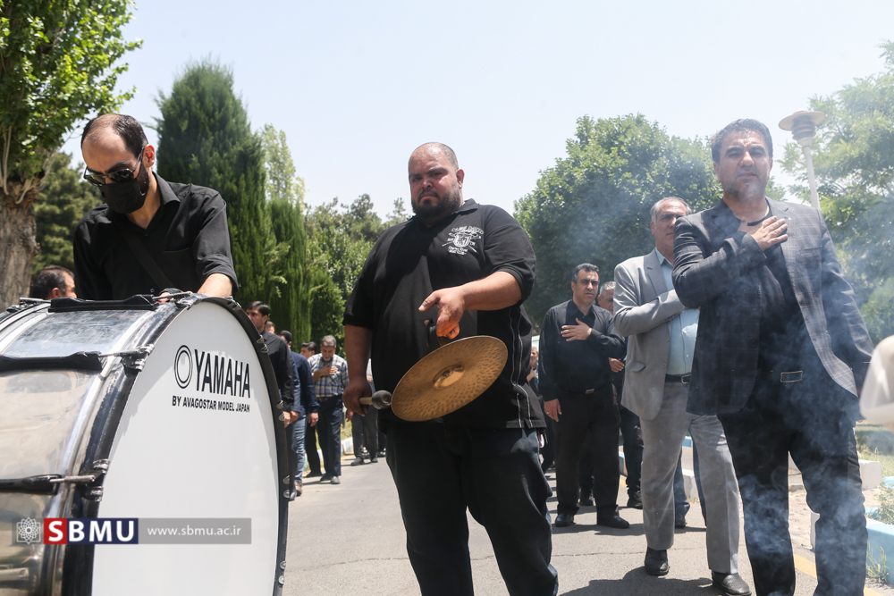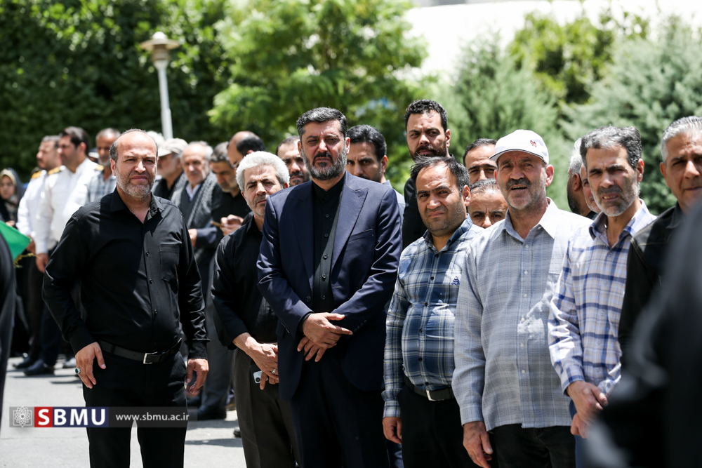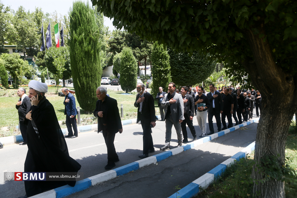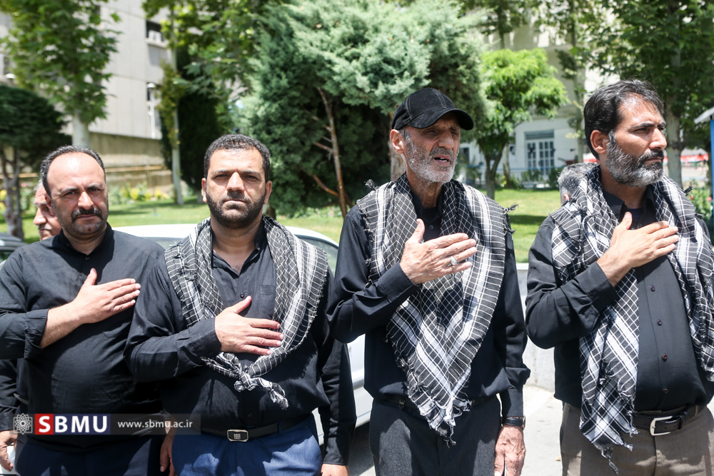مراسم عزاداری حضرت اباعبدالله‌الحسین(ع) با حضور جمعی از مسئولان و کارکنان دانشگاه علوم پزشکی شهید بهشتی سه شنبه دهم تیرماه در محوطه ستاد دانشگاه برگزار شد.
