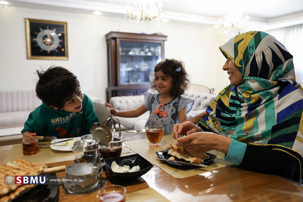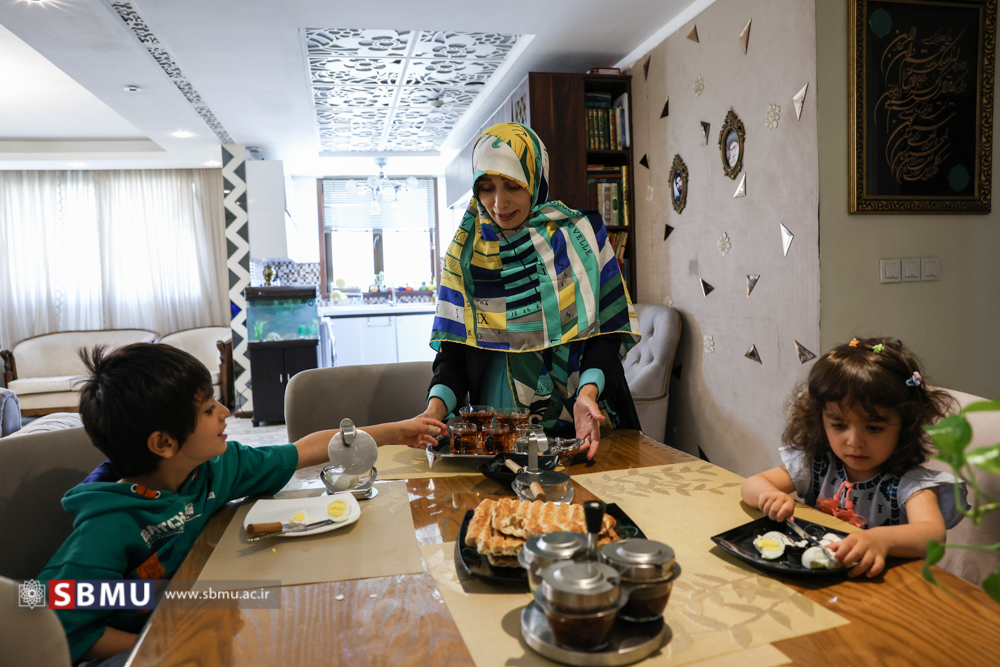 6 سال دارد. زینب اوسطی در طول روز به امور منزل رسیدگی می‌کند. وی زمان زیادی با فرزندان خود می‌گذراند. این خانواده  زمانی از روز خود را به تفریح اختصاص می‌دهند. پسر بزرگ مامای بیمارستان مهدیه، محمدپارسا 15 سال دارد و هر روز پس از پایان مدرسه، با خاواده خود همراه می‌شود. محمدپارسا مشغول انجام تکالیف مدرسه است. زینب اوسطی در جریان امور تحصیلی فرزند خود قرار می‌گیرد. مامای بیمارستان مهدیه که شاهد چشمان منتظر مادران زیادی بوده، در انتظار فرزند چهارم خود است.