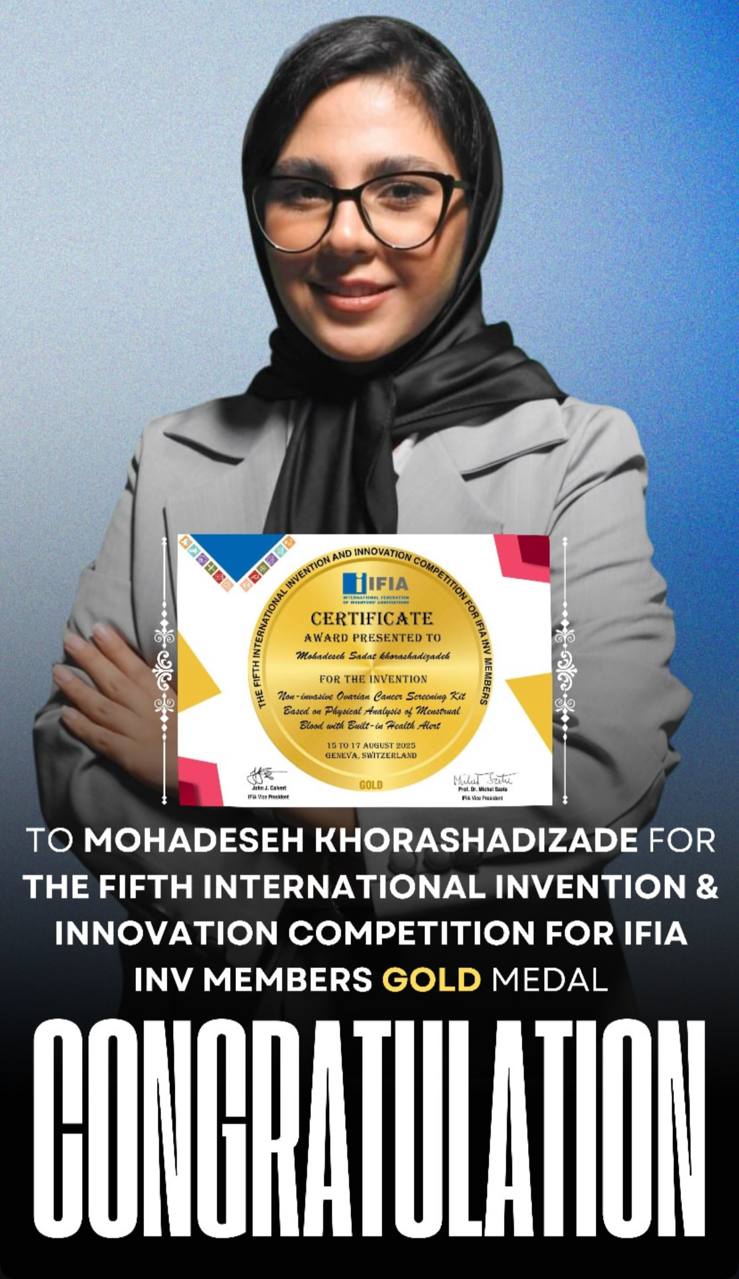 در کارنامه حرفه ای این دانشجوی دکتری کسب چندین مدال رنگارنگ در این حوزه به چشم می خورد که کسب مدال طلا و نقره IFIA سال  ۲۰۲۴ در مسابقات سوئیس ویژه اعضای فدراسیون جهانی مخترعین، کسب مدال برنز مسابقات ۲۰۲۵ (زنان کره جنوبی )، کسب مدال طلا IFIA ۲۰۲۵ مسابقات سوئیس ویژه اعضای فدراسیون جهانی مخترعین  از آن جمله است.