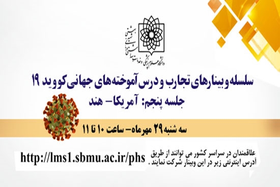 پنجمین وبینار بررسی تجارب و درس آموخته های جهانی درخصوص کووید ١٩ (COVID-19)با محوریت کشورهای امریکا و هند سه شنبه ۲۹مهرماه برگزار می شود.