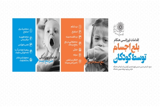 عضو هیئت علمی دانشگاه تاکید کرد: در صورت مشاهده علامتهای تنفسی، سرفه، کبودی لب و یا تنگی نفس با اورژانس تماس بگیرد تا اقدامات اورژانسی برای کودک جهت باز شدن راههای تنفسی انجام شود.