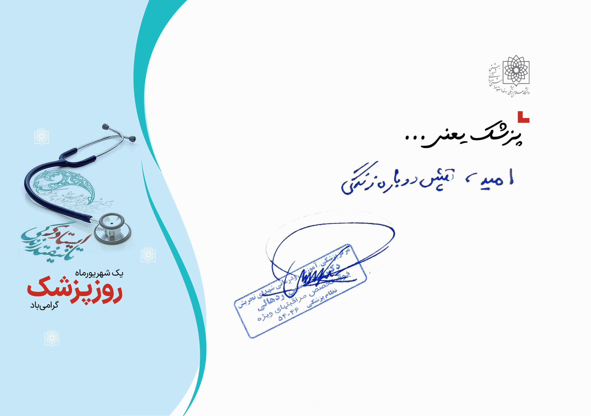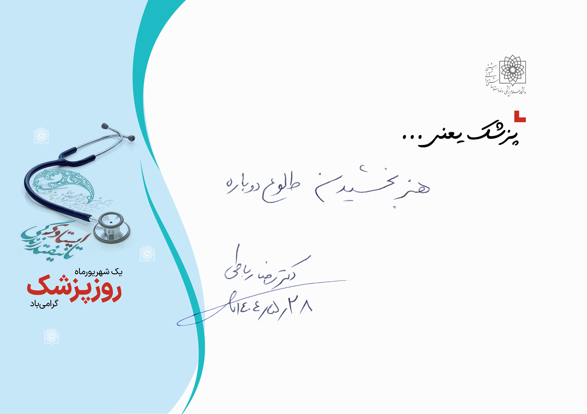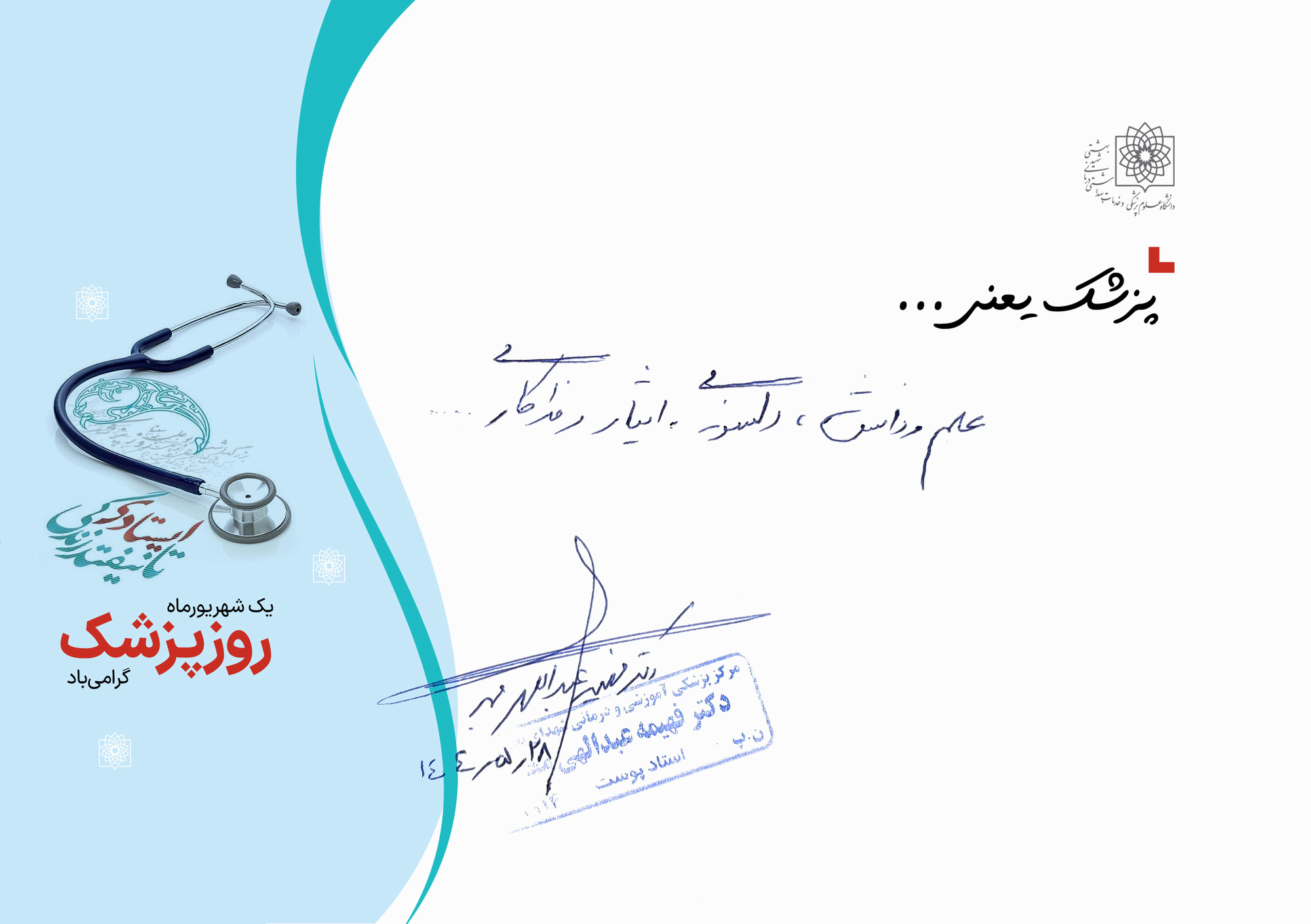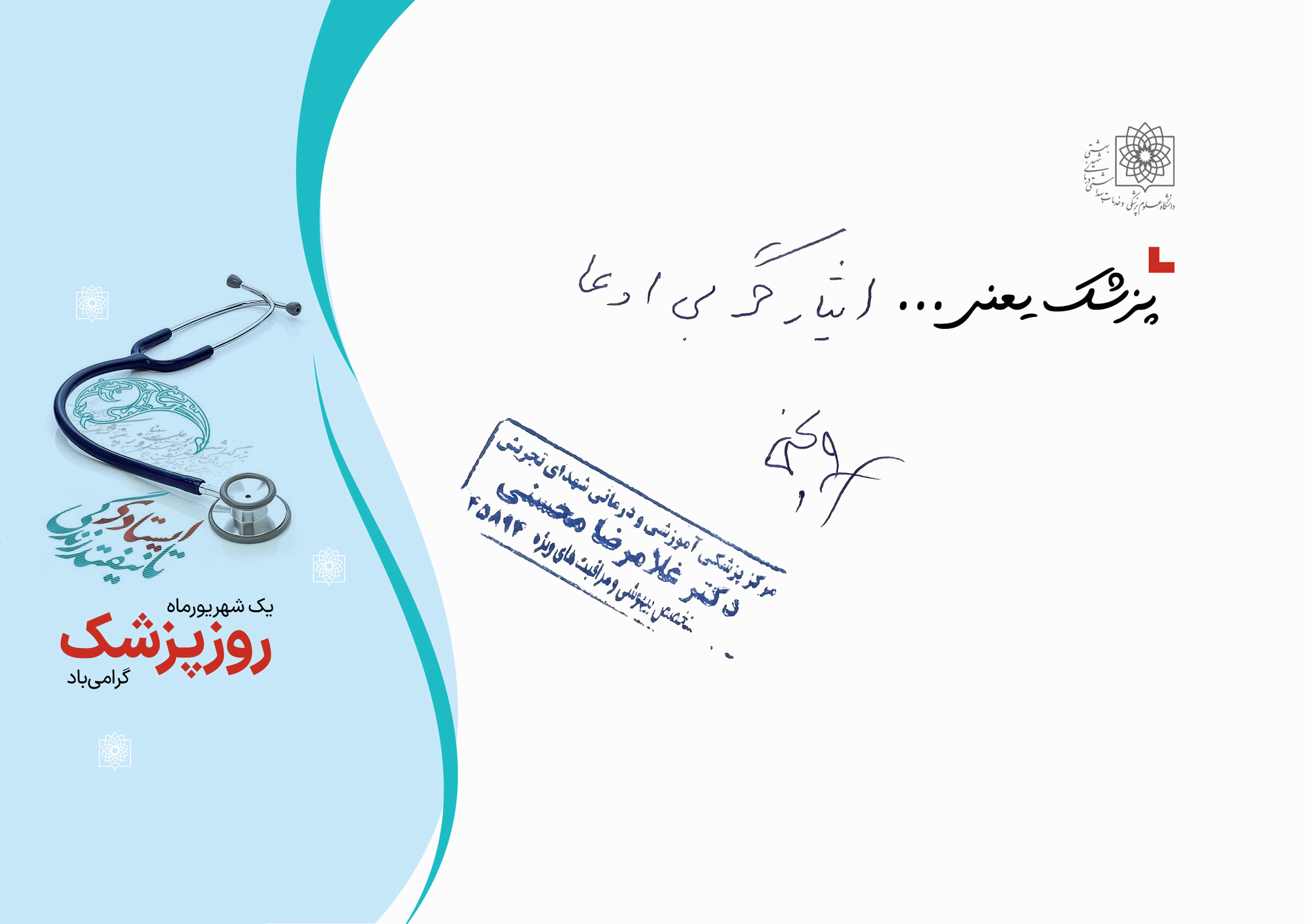 در آستانه فرا رسیدن روز پزشک، پزشکان دانشگاه علوم پزشکی شهید بهشتی جملات الهامبخش خود را درباره رسالت پزشکی در قالب نسخههایی نمادین نوشتند؛ عباراتی ساده و صمیمی اما عمیق درباره معنای طبیب و طبابت.