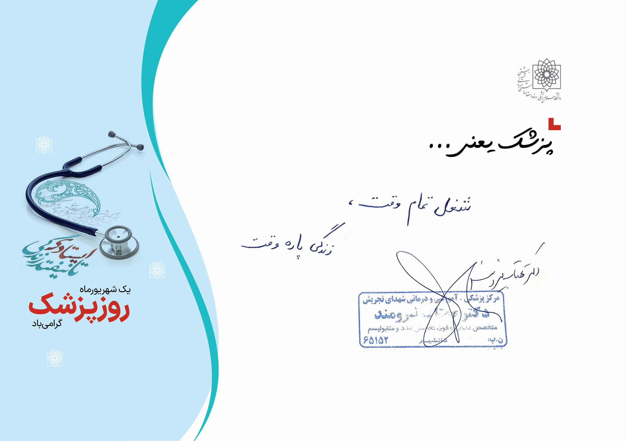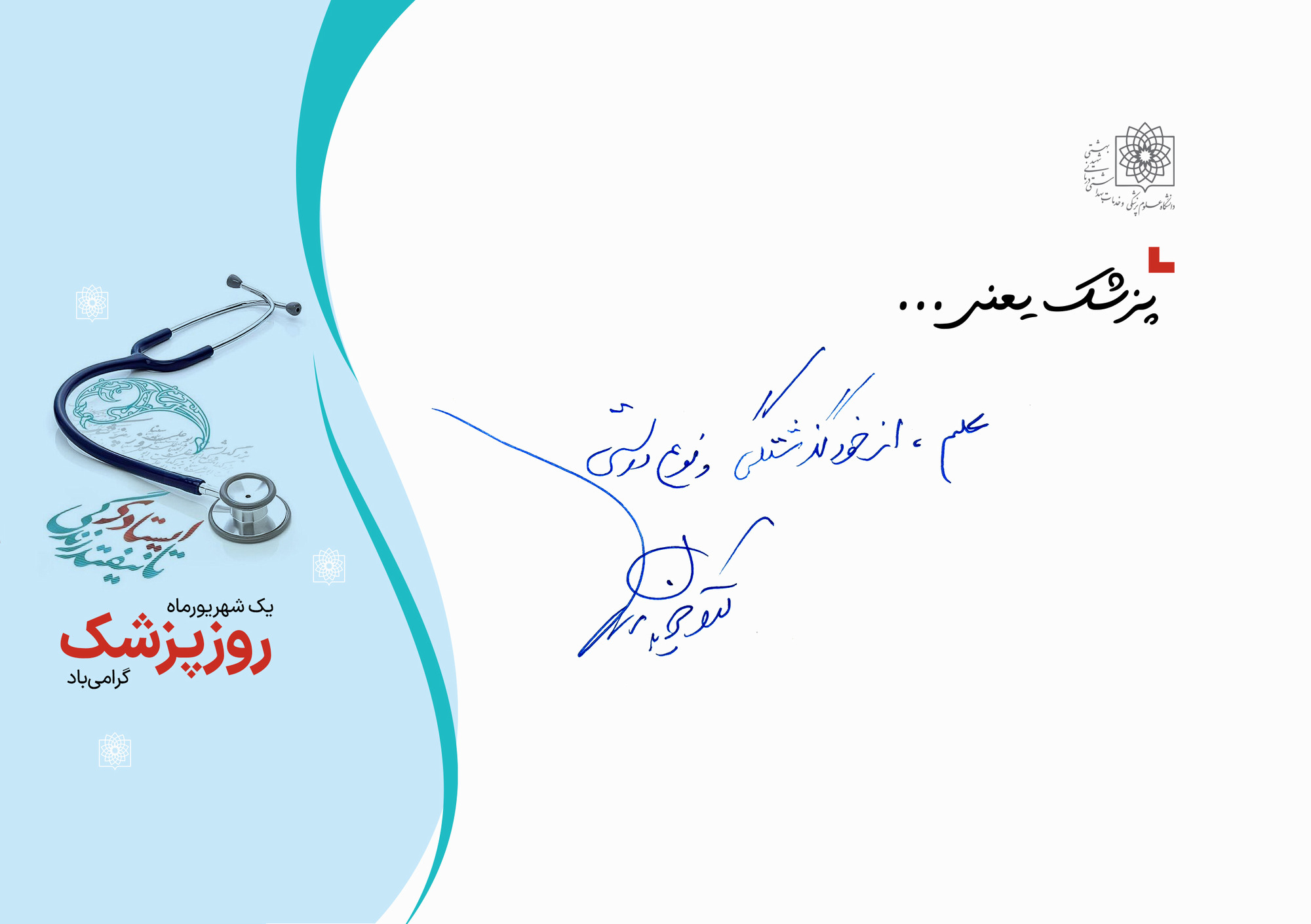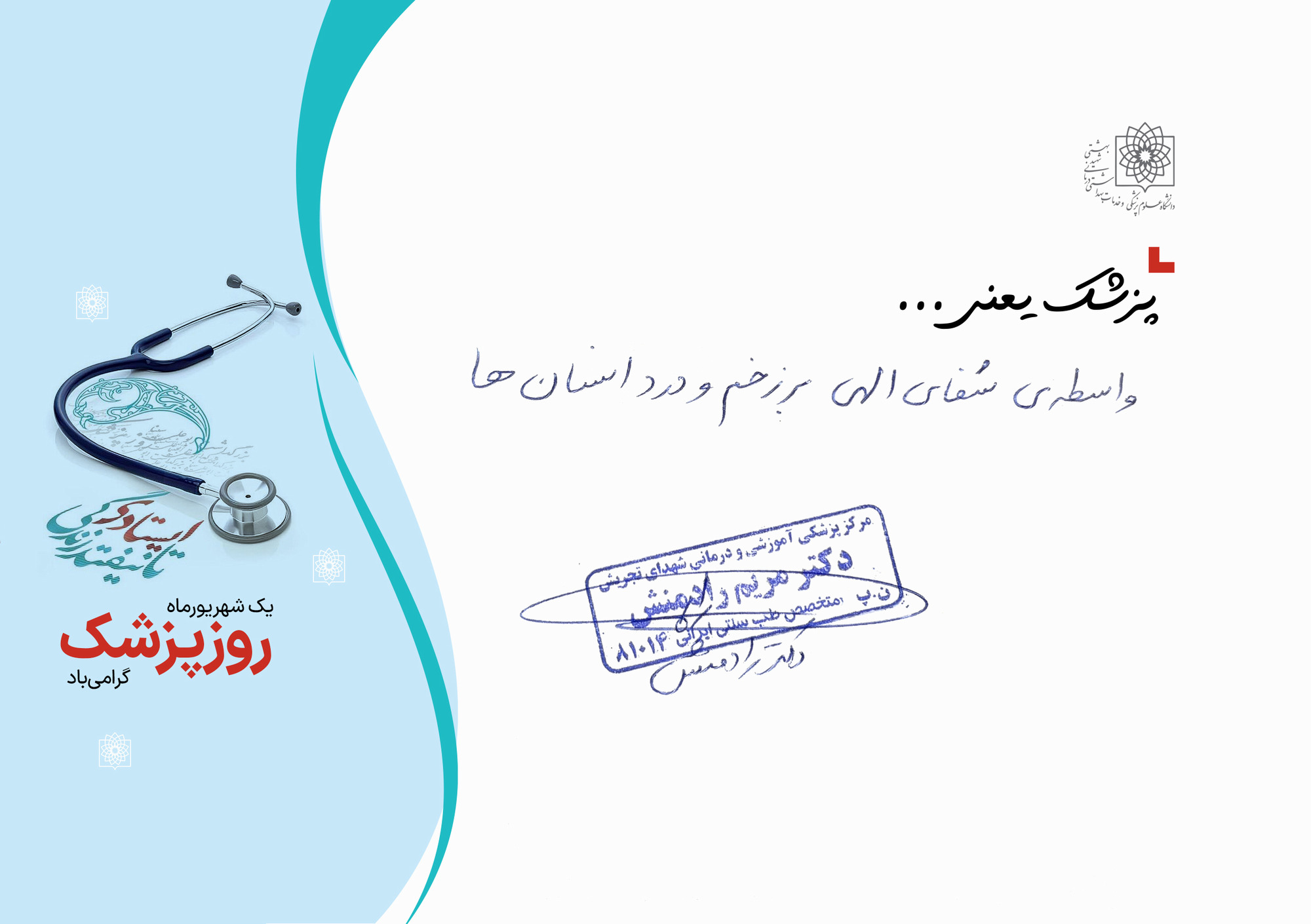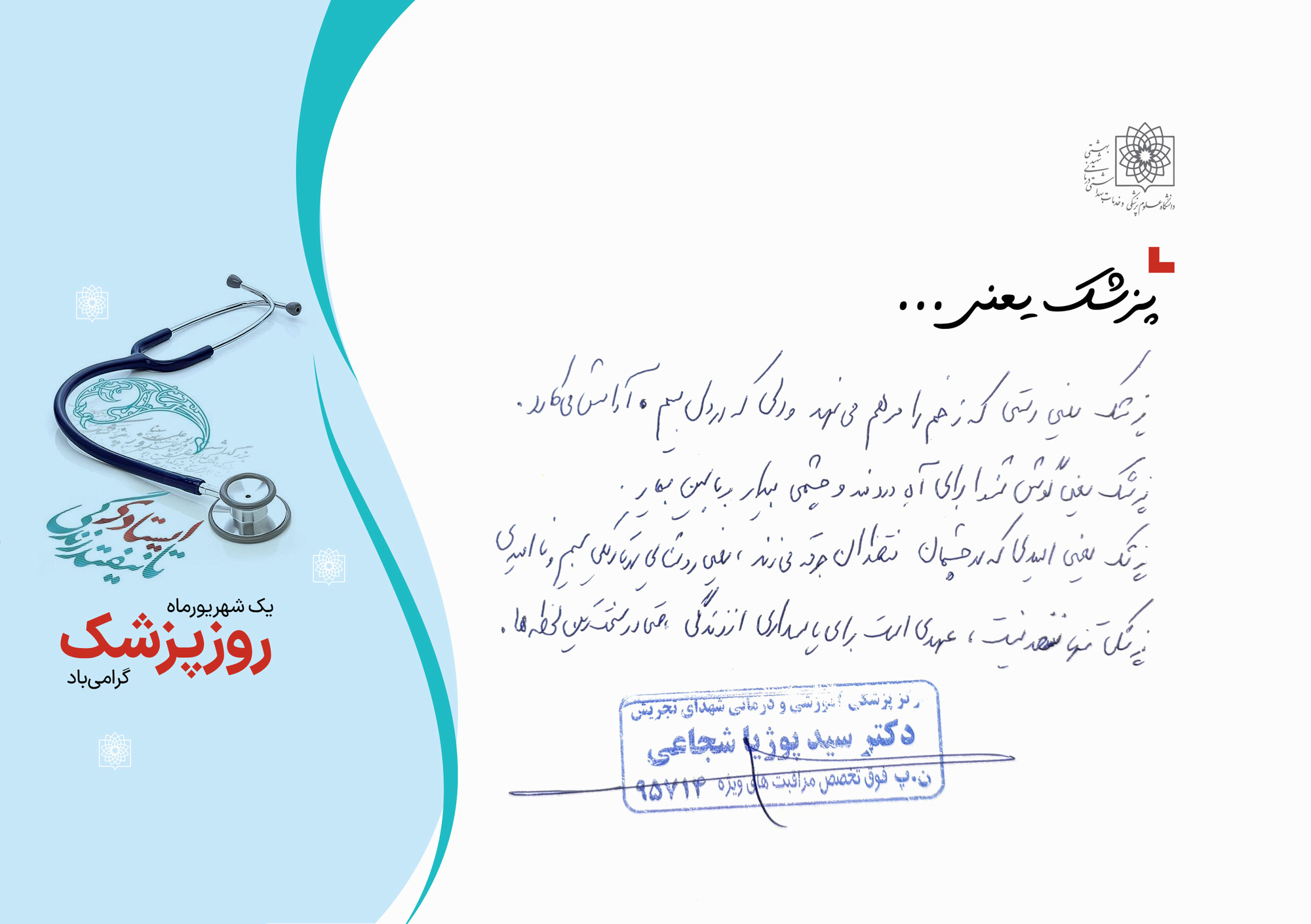 در آستانه فرا رسیدن روز پزشک، پزشکان دانشگاه علوم پزشکی شهید بهشتی جملات الهامبخش خود را درباره رسالت پزشکی در قالب نسخههایی نمادین نوشتند؛ عباراتی ساده و صمیمی اما عمیق درباره معنای طبیب و طبابت.