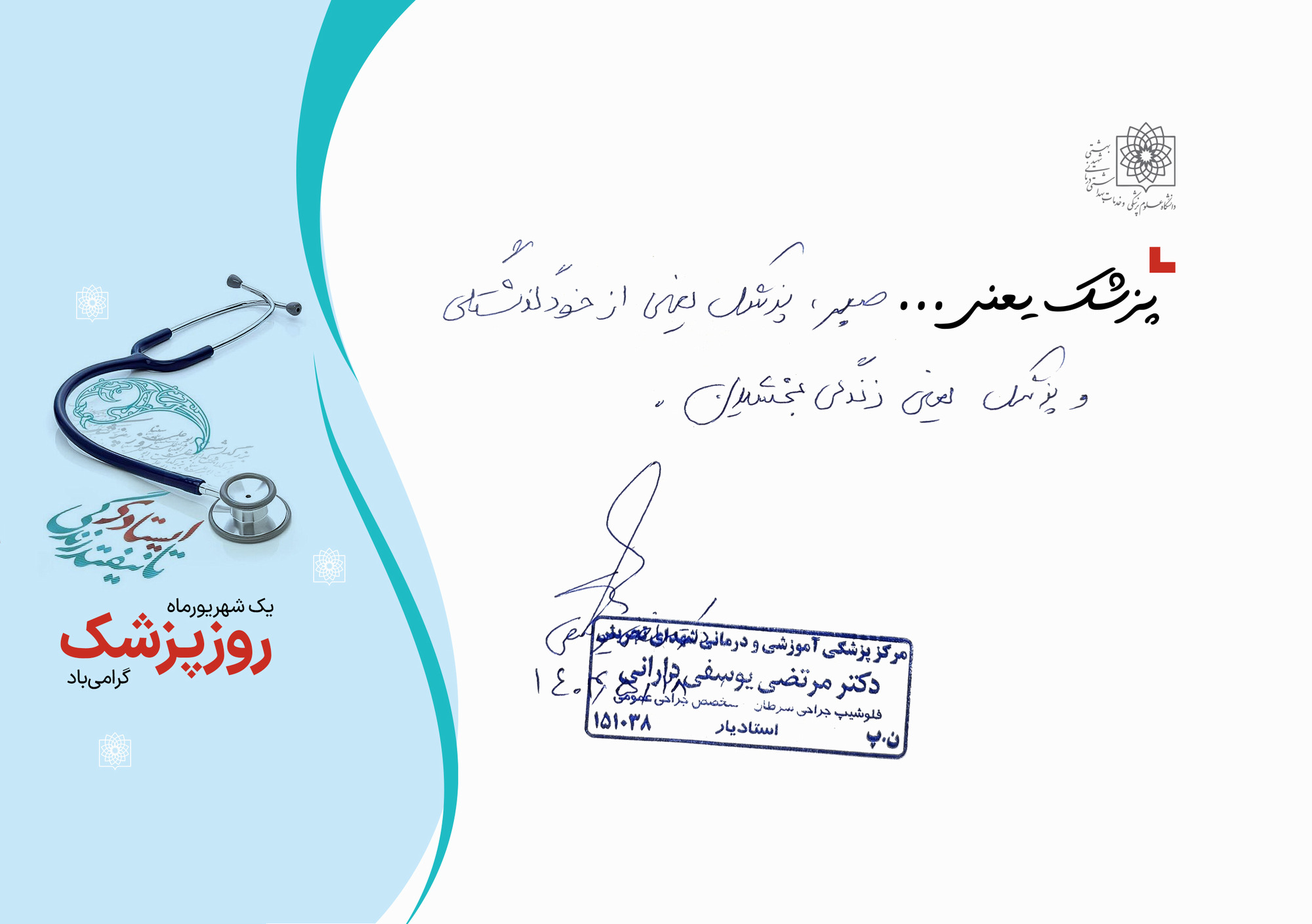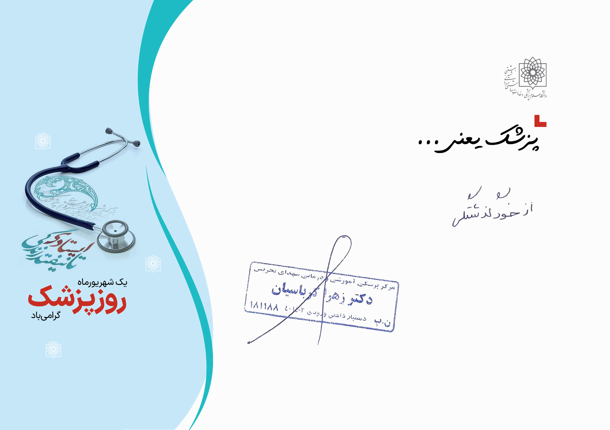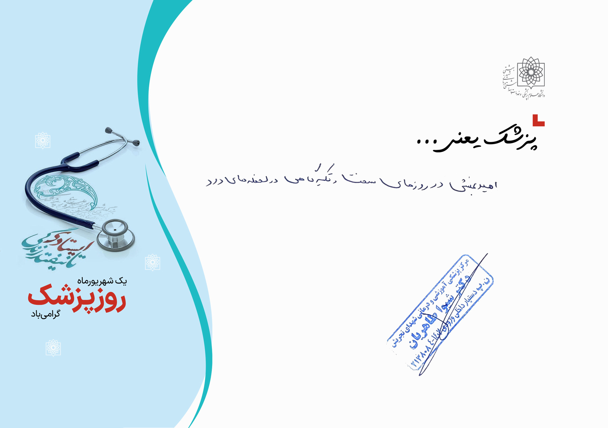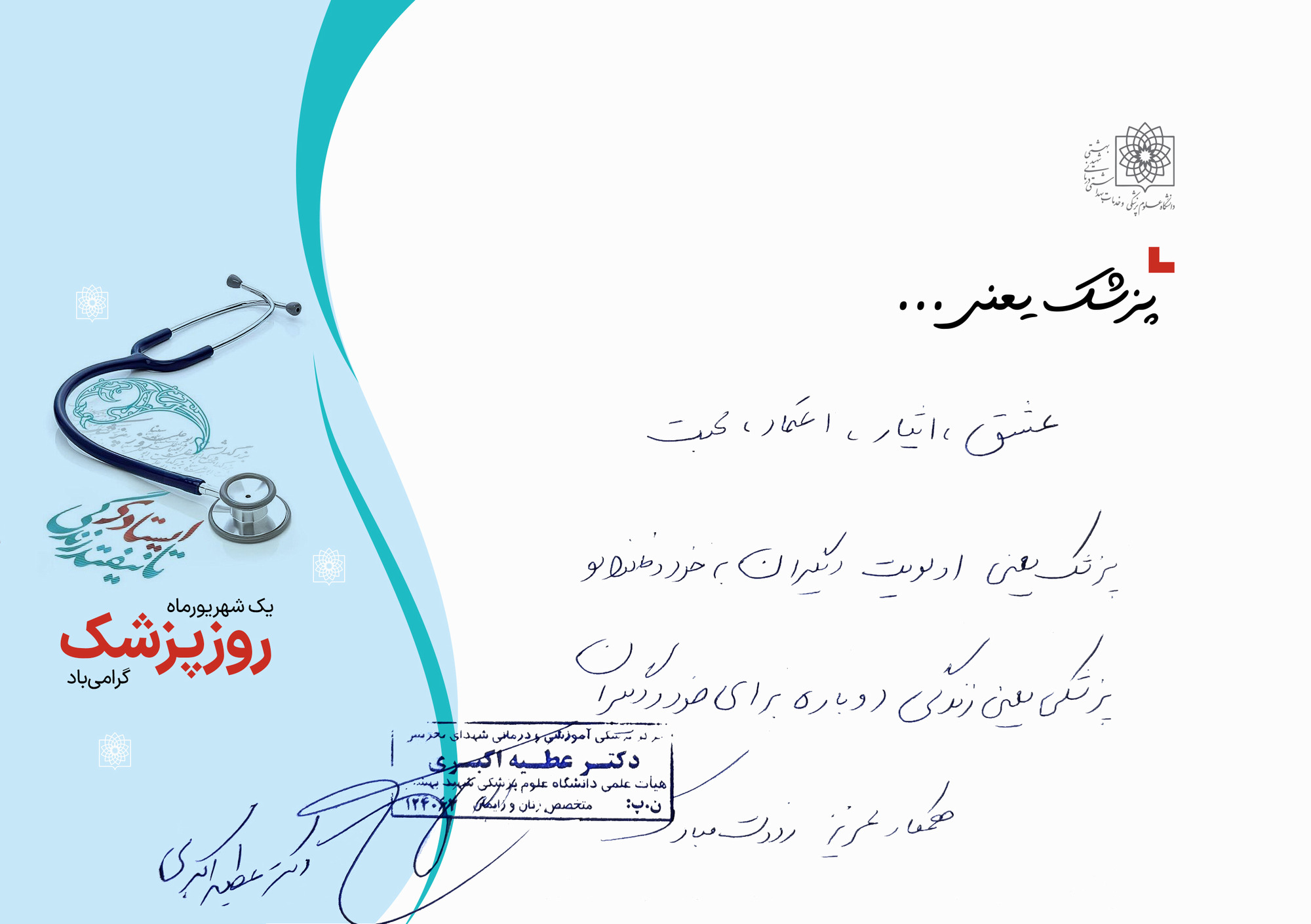 در آستانه فرا رسیدن روز پزشک، پزشکان دانشگاه علوم پزشکی شهید بهشتی جملات الهامبخش خود را درباره رسالت پزشکی در قالب نسخههایی نمادین نوشتند؛ عباراتی ساده و صمیمی اما عمیق درباره معنای طبیب و طبابت.