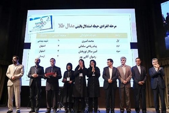 مدال طلا در بخش انفرادی حیطه کارآفرینی به کسری حاتم پور گراویانی، فرشاد شاه کرمی و صفورا دری از دانشگاه علوم پزشکی تهران و در بخش گروهی به سارا صفایی، هانیه سیاوشی، محمدعلی محمدی و حامد فرزانه از منطقه 8 آمایشی رسید.
