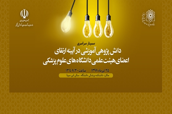 سمینار سراسری « آشنایی با دانش پژوهی آموزشی در آیینه آیین نامه ارتقای اعضای هیات علمی دانشگاه های علوم پزشکی»25 تیر ماه برگزار می شود.