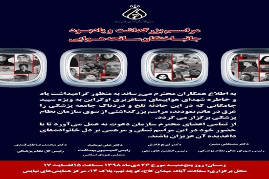مراسم یادبود جانباختگان سانحه هوایی از سوی سازمان نظام پزشکی برگزار می شود