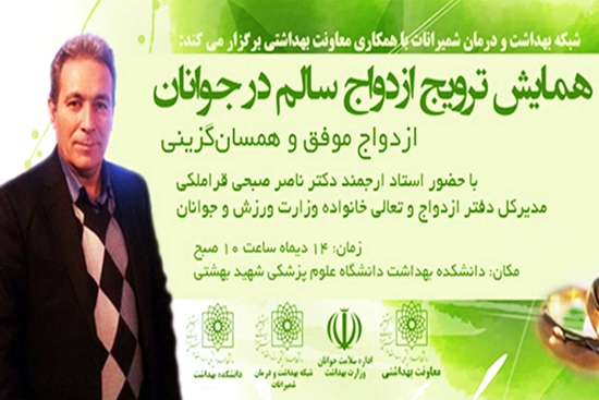 این همایش با هدف ارتقا آگاهی جوانان در خصوص انتخاب زوج مناسب و اهمیت همسان گزینی در پایداری ازدواج و با حضوردکتر ناصر صبحی قراملکی مدیرکل دفتر ازدواج و تعالی خانواده وزارت ورزش و جوانان در سالن اجتماعات دانشکده بهداشت دانشگاه علوم پزشکی شهید بهشتی برگزار خواهد شد.