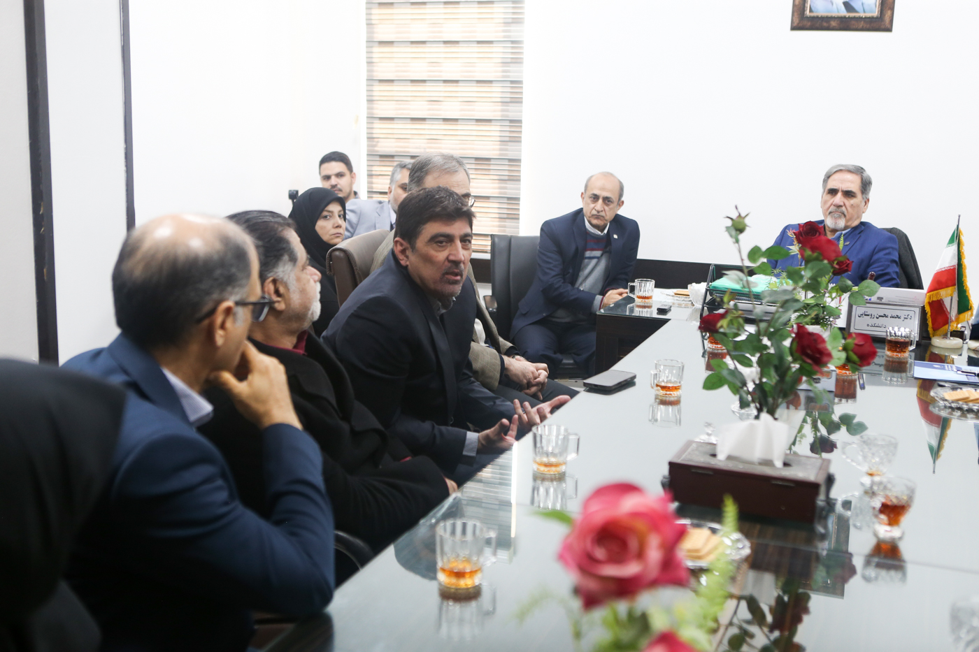 سپس رییس دانشگاه به همراه معاون آموزشی، بین الملل و تحقیقات و فناوری در نشستی صمیمانه با نمایندگان دانشجویان، پس از شنیدن سخنان و دغدغههای آنان به بیان توضیحاتی درباره موضوعات مطرح شده پرداخت.