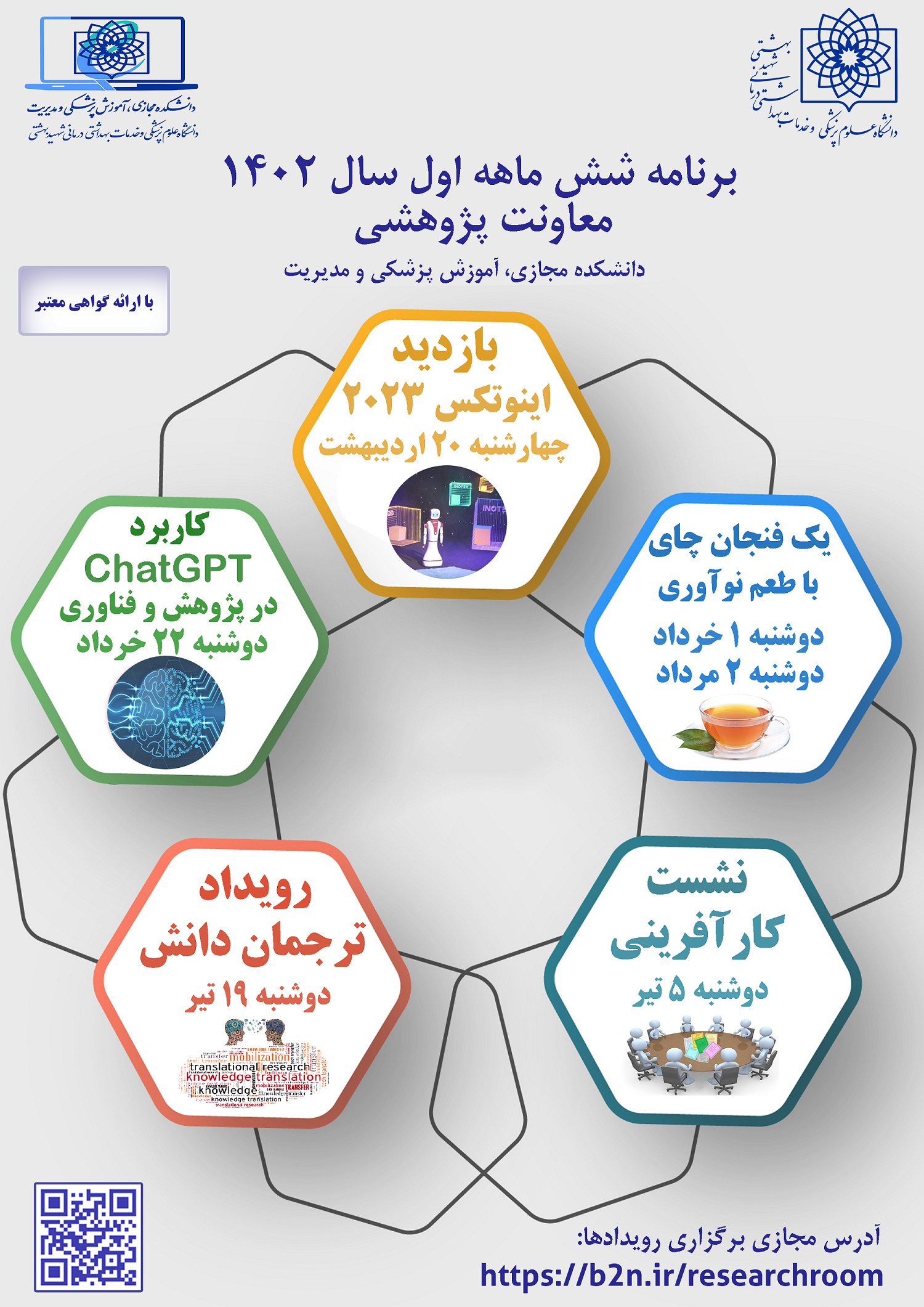 همچنین نشست کاربرد  chatGPT در پژوهش و فناوری دوشنبه 22 خردادماه، نشست کارآفرینی دوشنبه پنجم تیرماه و رویداد ترجمان دانش 19 تیرماه برگزار خواهد شد.
