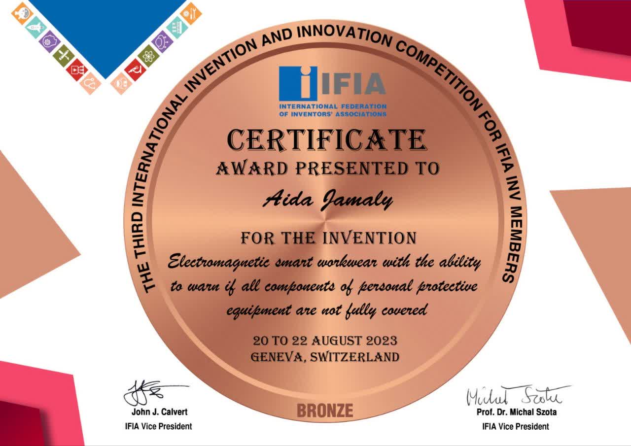 به گزارش روابط عمومی دانشگاه علوم پزشکی شهیدبهشتی به نقل از دانشکده بهداشت و ایمنی، در این مسابقه که به صورت مجازی و آنلاین در سوییس برگزار شد، اختراع آیدا جمالی دانشجوی کارشناسی رشته مهندسی بهداشت حرفهای دانشگاه با عنوان لباس محافظ کارگران به همراه فرستندههای هوشمند موفق به کسب مدال برنز شد.