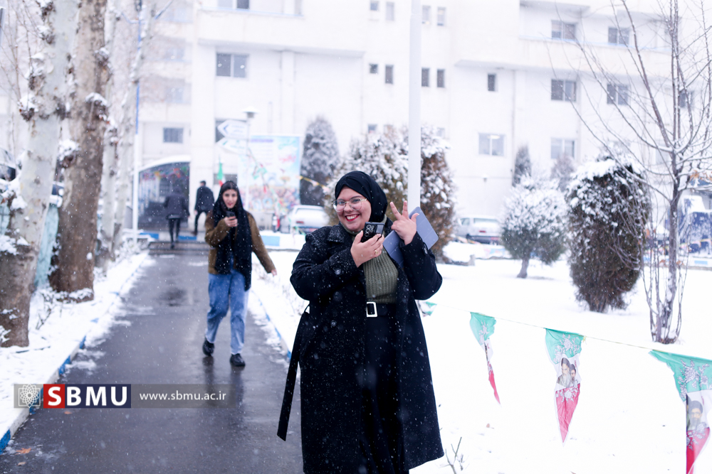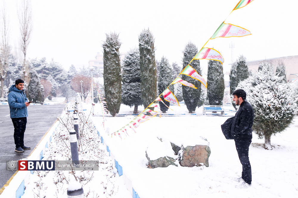 عکس: آزاده ترکمن/ بارش برف در شهر تهران بیشتر نقاط این شهر را سفیدپوش کرده است و دانشگاه علوم پزشکی شهید بهشتی هم از این نعمت بینصیب نمانده است.