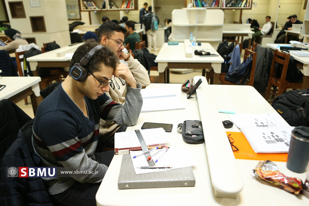 عکس: آزاده ترکمن/ دانشجویان دانشگاه علوم پزشکی شهید بهشتی این روزها در تب و تاب امتحانات پایان ترم هستند و تلاش آنها برای آمادگی در امتحانات حال و هوای گوشه و کنار فضای دانشگاه از جمله کتابخانهها را نیز تغییر داده است.
