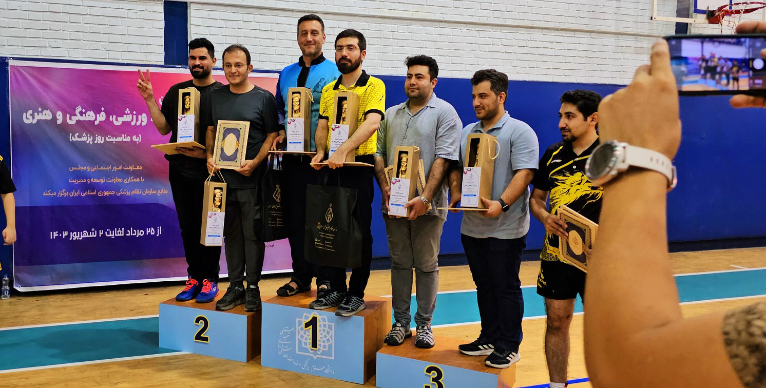 مقام اول رشته بدمینتون دونفره زیر 50 سال دکتر محمد رستمی نژاد و دکتر امیرحسین احسانی