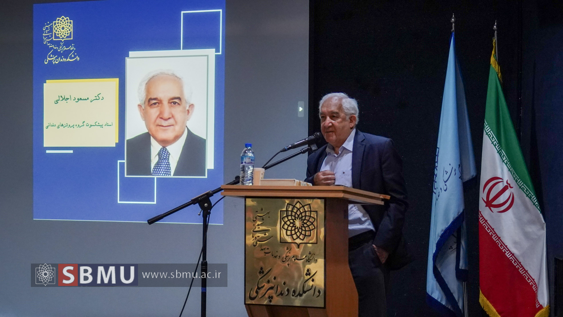 در ادامه مراسم دکتر مسعود اجلالی استاد پیشکسوت گروه پروتزهای دندانی به ذکر خاطراتی از دوران فعالیت خود در حوزه آموزش و درمان پرداخت.