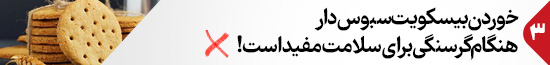به گفته این عضو هیئت علمی دانشگاه باور سوم، غلط و متداولی که بین عموم مردم رواج دارد این است که هر زمان احساس ضعف یا گرسنگی دارید بیسکویت سبوس دار بخورید.