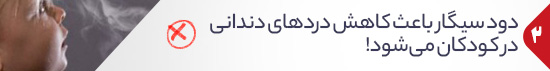 وی استفاده از دود سیگار برای کاهش درد های دندانی و گوش برای کودکان مورد انتقاد قرارداد و هشدار داد: دود سیگار گردش خون را کم می کند و همین موضوع می تواند برای کودک بسیار خطرناک باشد، ضمن این که کانون دردهای دندانی استخوان و ریشه دندان پوسیده است و درمانهای خانگی اثری بر اصل موضوع ندارد خصوصا دود سیگار که به مراتب مضراتی به همراه دارد بنابراین تنها و مطمئن ترین مسیر مراجعه به دندانپزشک و درمان دندان یا لثه است.