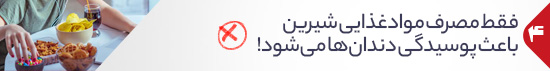 وی با بیان این که باور نادرست و متداول دیگر این است که فقط زمانی که از مواد غذایی شیرین استفاده می کنیم دندان ها در معرض پوسیدگی قرار می گیرند ادامه داد: برخی از مواد غذایی مثل چیپس یا ماکارونی به خودی خود شیرین نیستند ولی زمانیکه وارد دهان می شوند تبدیل به قند می شوند و به مراتب پوسیدگی که با این مواد غذایی ایجاد می شود از سایر مواد قندی بیشتر است.