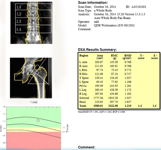 شناسایی درصد تراکم استخوان با تفسیر آزمایش تراکم استخوان انجام می‌شود. در این آزمایش ۲ پارامتر وجود دارد که با T و Z نشان داده می‌شود. عدد T به مقداری اشاره دارد که فرد آزمایش دهنده، در حالت سالم و نرمال باید داشته باشد. عدد Z نیز در مقایسه با دیگر افراد هم‌سن، نژاد و جنسیت مقایسه می‌کند.