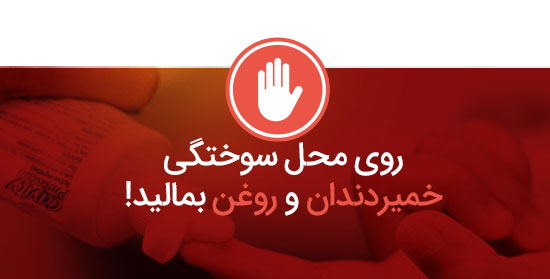 سرپرستار بخش سوختگی بیمارستان 15 خرداد استفاده از یخ، خمیردندان، روغنمایع و سیب زمینی و یا هر درمان خودسرانه را مورد انتقاد قرار داد و افزود: در سوختگیهای سطحی در گام اول محل سوختگی را با آب ولرم شستو شو دهید و سپس از پمادهای ضد سوختگی معتبر استفاده کنید.